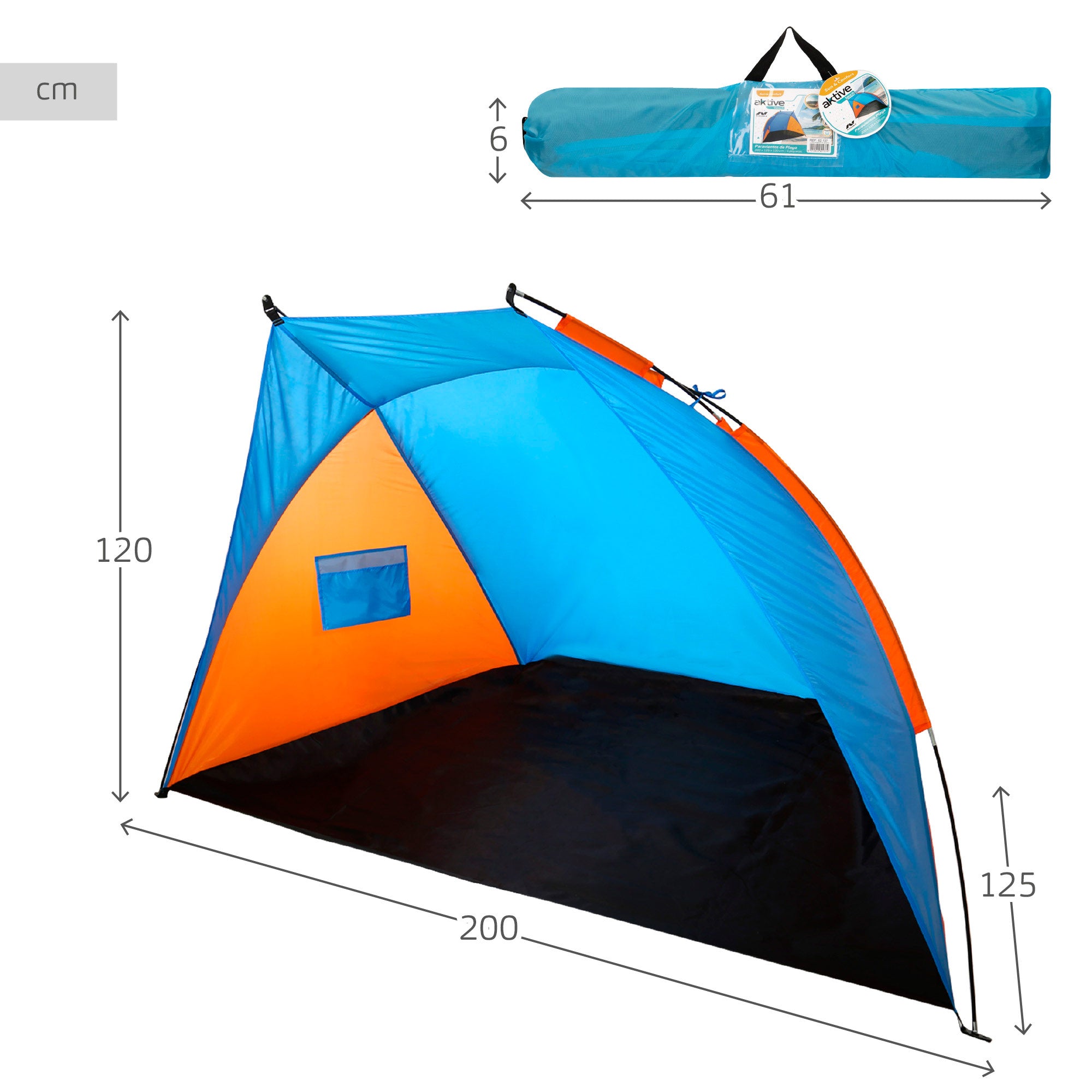 Refúgio para-ventos impermeável da Aktive Beach na cor azul, medidas de: 200x125x120