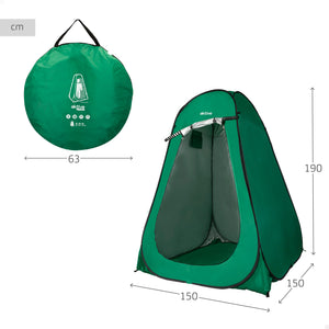 Mede 150 cm de largura, 150 cm de comprimento e 190 cm de altura. Tenda em mudança na cor verde feita de poliéster 100% 170T de alta qualidade
