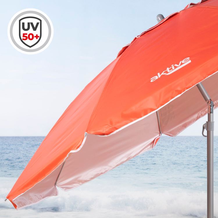 Guarda-chuva de praia à prova de vento Max Air coral Ø200 cm com mastro basculante e regulável em altura Ø28/32 mm Aktive Beach