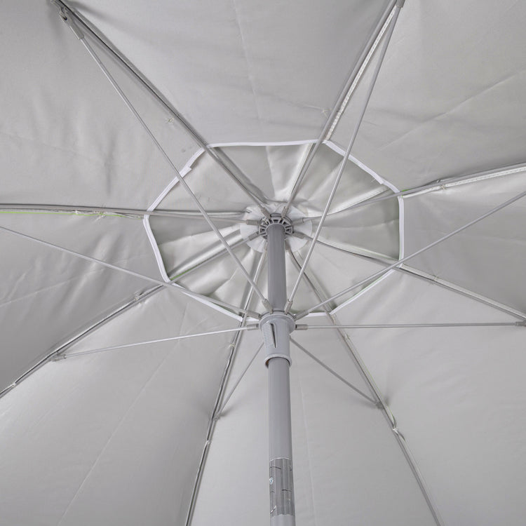 Guarda-chuva de praia à prova de vento de alta qualidade Max Air da Aktive Beach. O guarda-chuva é de forma octogonal e tem um design de cor coral e um mastro cinza. Sua proa tem 200 cm de diâmetro e seu mastro regulável em altura tem 28/32 mm de diâmetro. O guarda-sol é confeccionado em tecido de poliéster, possui revestimento prateado com proteção UV50 e sua haste é de alumínio. Uma das características que o tornam especial é a sua resistência ao vento graças à ventilação na parte superior e às suas 8 hastes flexíveis em fibra de vidro. Além disso, sua haste de alta resistência é inclinável, de modo que o guarda-chuva pode ser orientado de acordo com a posição do sol. Inclui armazenamento correspondente e bolsa de transporte com alça de ombro.