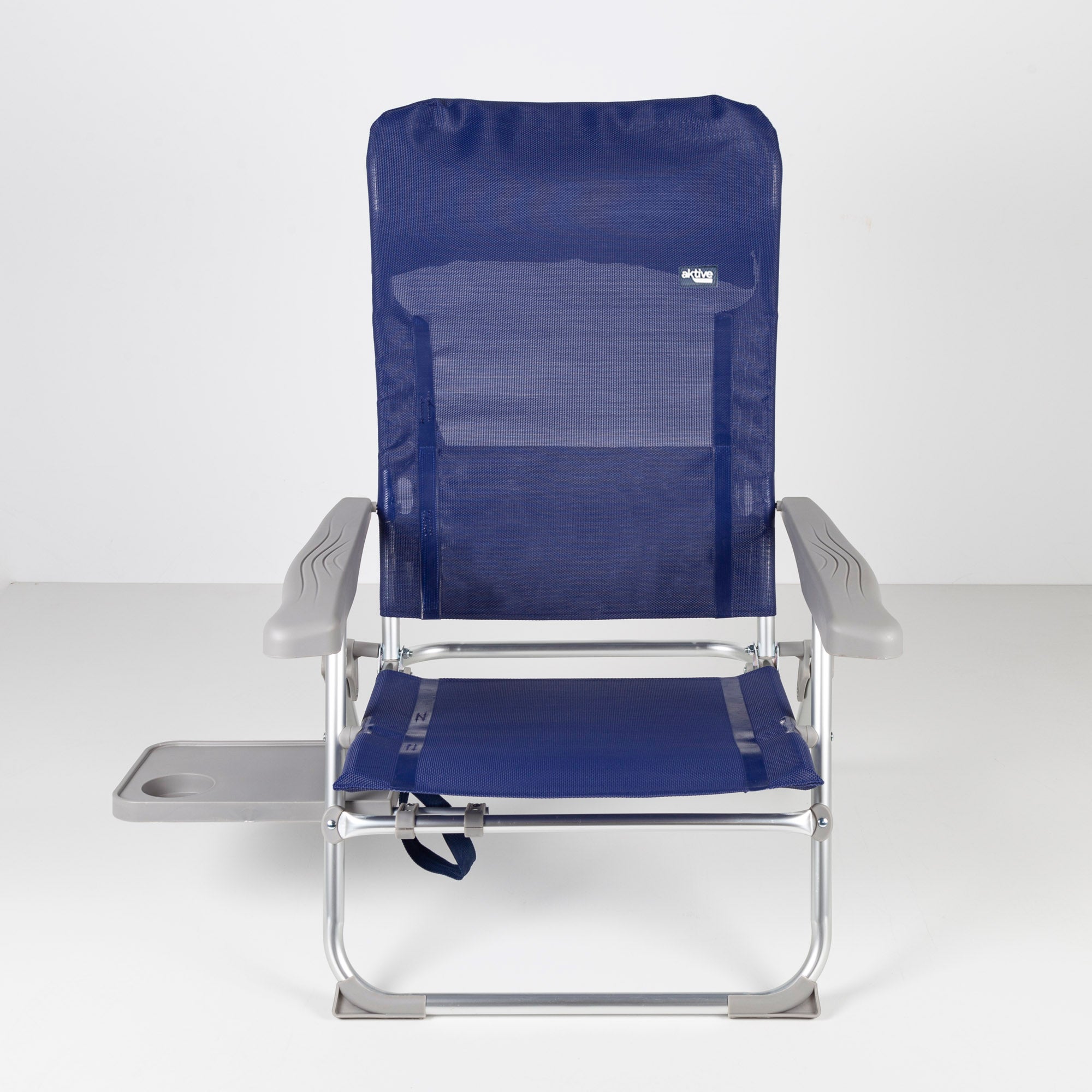 Cadeira de praia dobrável extraplana azul marinho com alças de transporte, mesa removível e almofada embutida Aktive Beach