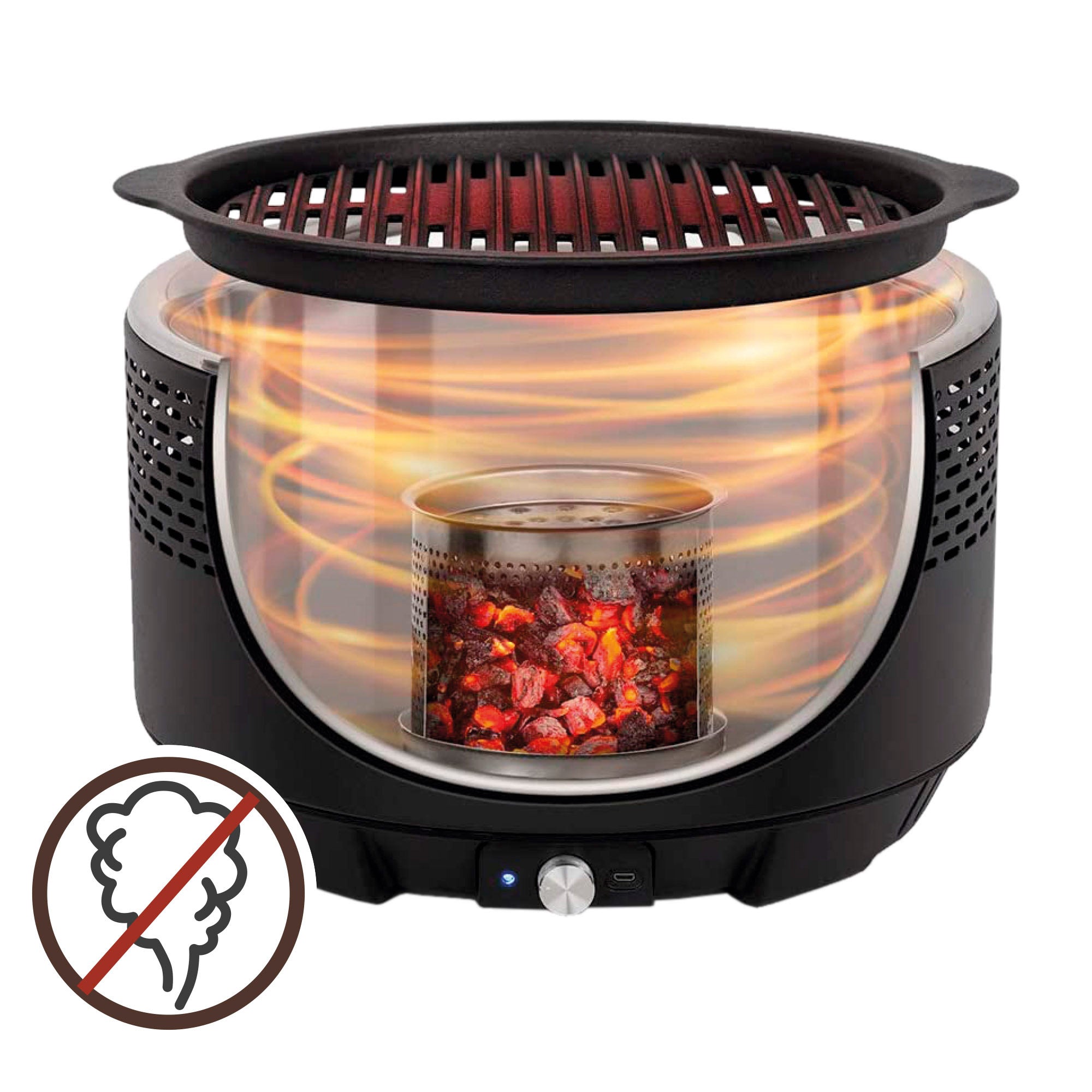 Aktive Churrasqueira Redonda Sem Fumaça Preta 2 em 1 Tampo de Mesa Ø34 cm