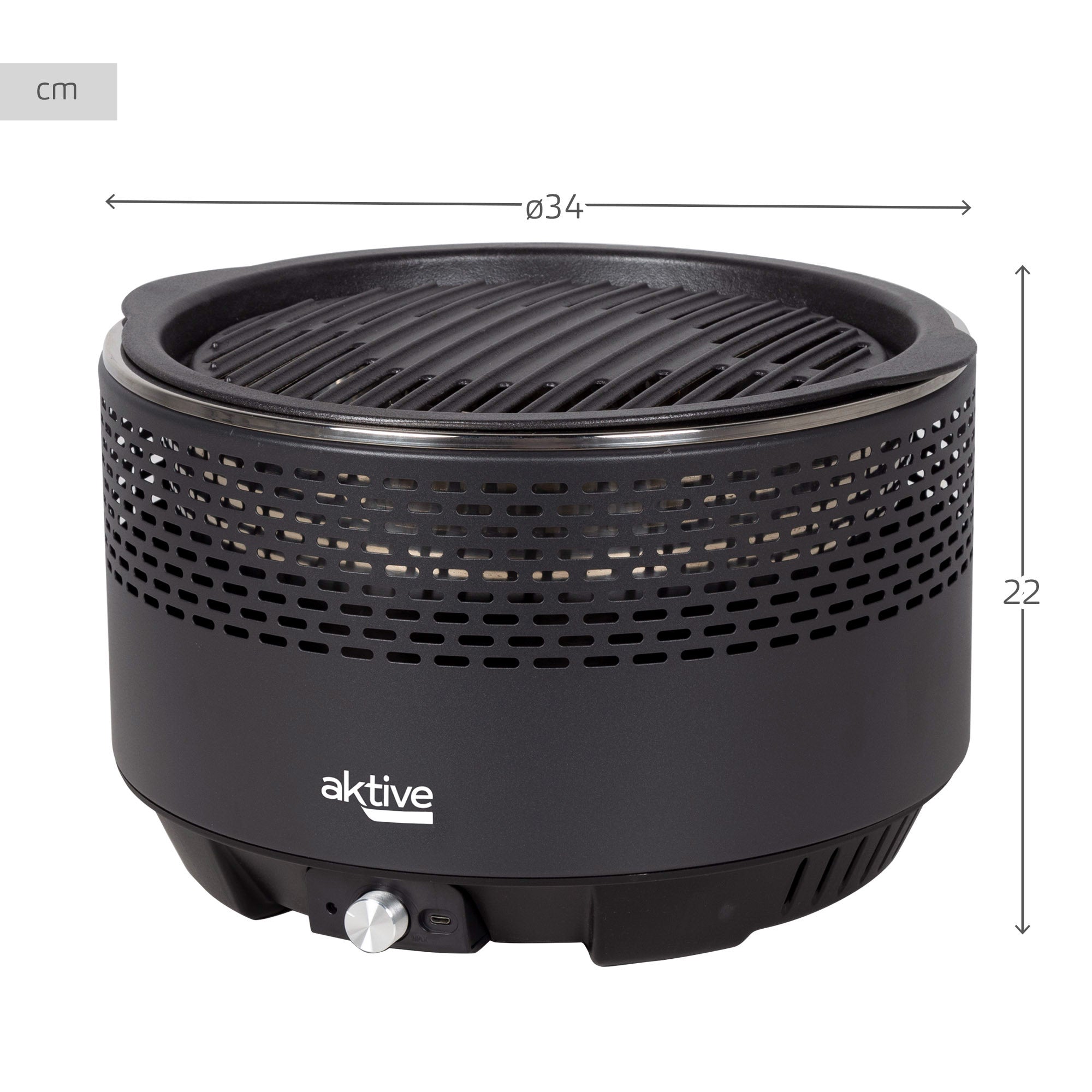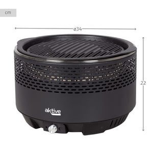 Churrasqueira a carvão de baixa fumaça, redonda e preta Aktive Barbecue. É feito de aço inoxidável e mede Ø34x22 cm