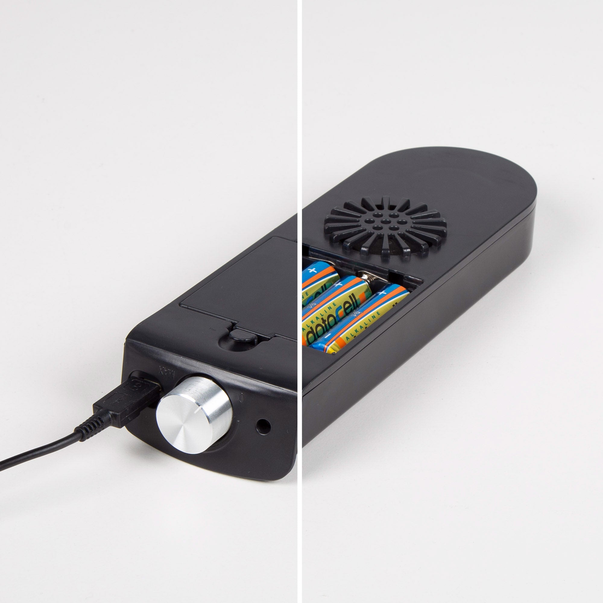 Baixa emissão de fumaça: possui um eficiente sistema de ventilação que funciona com 4 pilhas AA (n/incluídas) ou com carregador USB (cabo n/incluído)