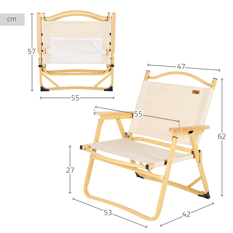 Aktive Cadeira Rebatível Baixa para Campismo em Alumínio Creme com Bolso