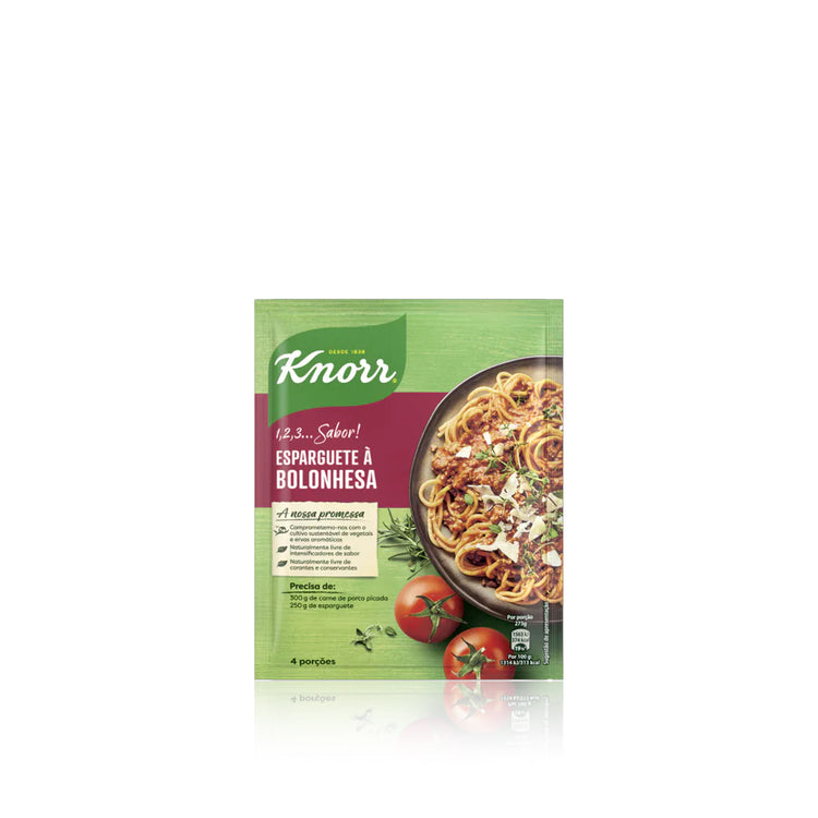 O tradicional esparguete à bolonhesa ficou ainda mais fácil de confecionar com Knorr 1,2,3...Sabor! Esparguete à Bolonhesa. Cada saqueta contém uma mistura de ingredientes naturalmente desidratados para dar todo o sabor às suas refeições familiares. Basta adquirir os ingredientes indicados na embalagem, seguir o modo de preparação, e em pouco tempo terá um prato muito saboroso.