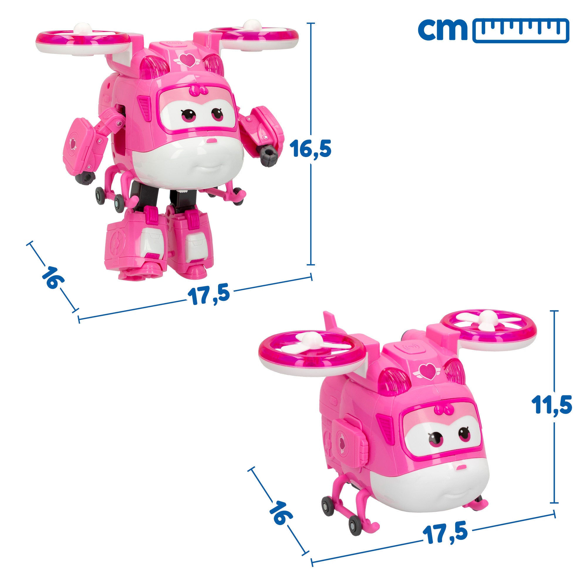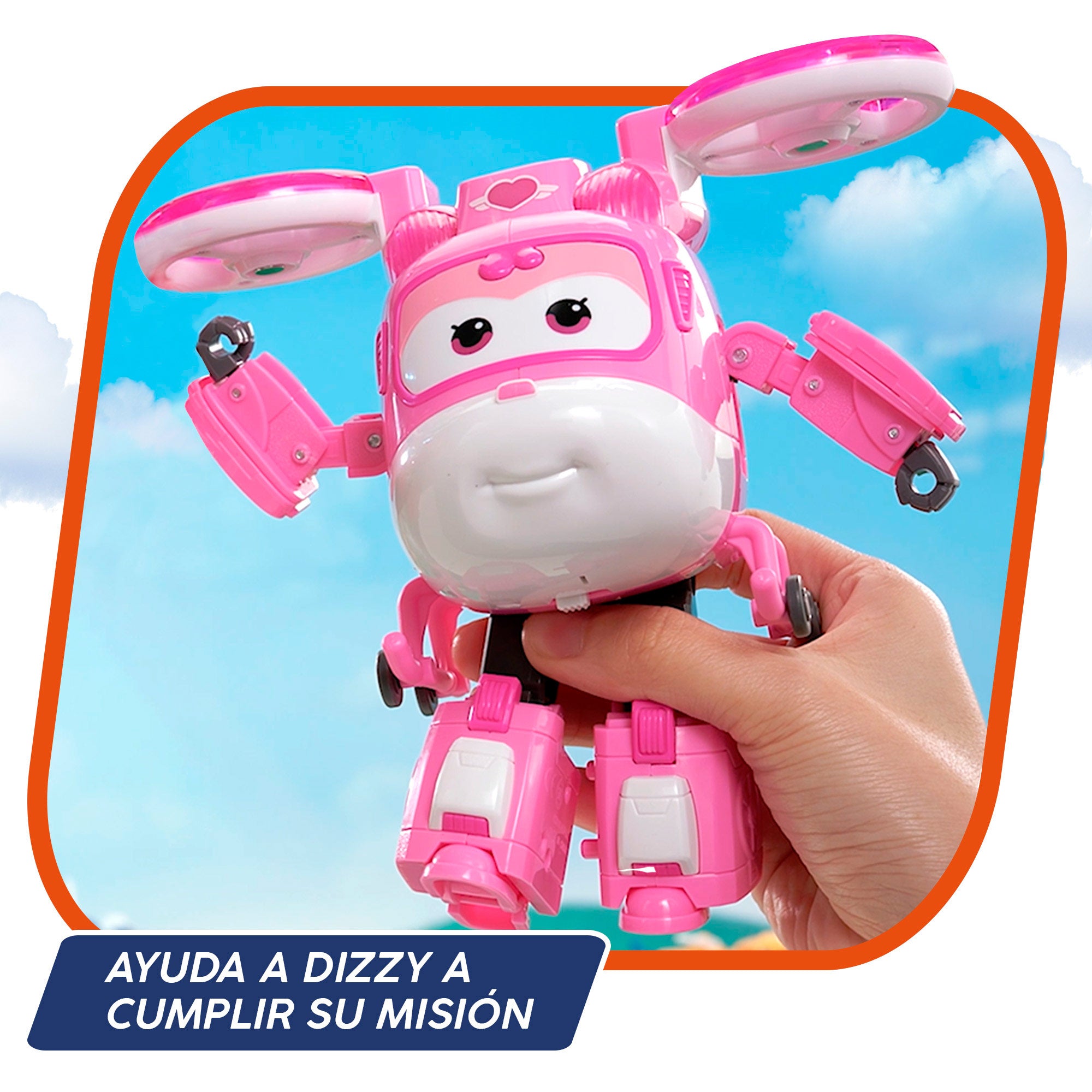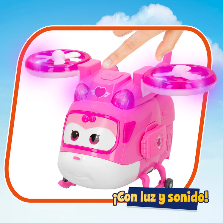 Figura Dizzy: É o helicóptero de resgate que ajuda a Jett se tem uma emergência, transforma-a de avião para robô e observa como se ilumina e emite sons!
