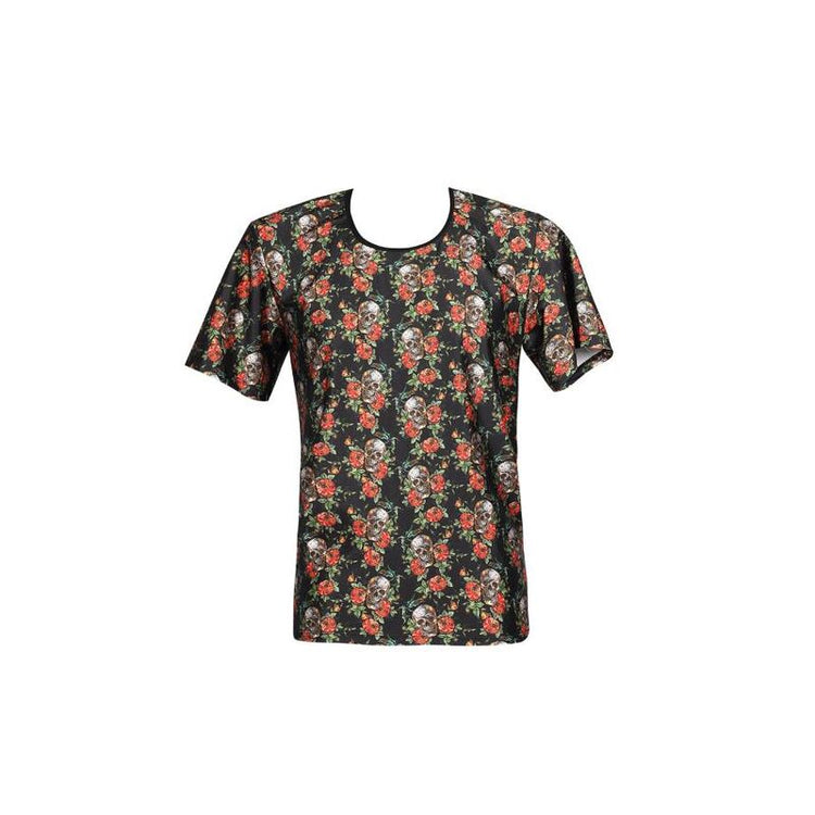 Modal suave de cor transparente com estampado de rosas e caveiras