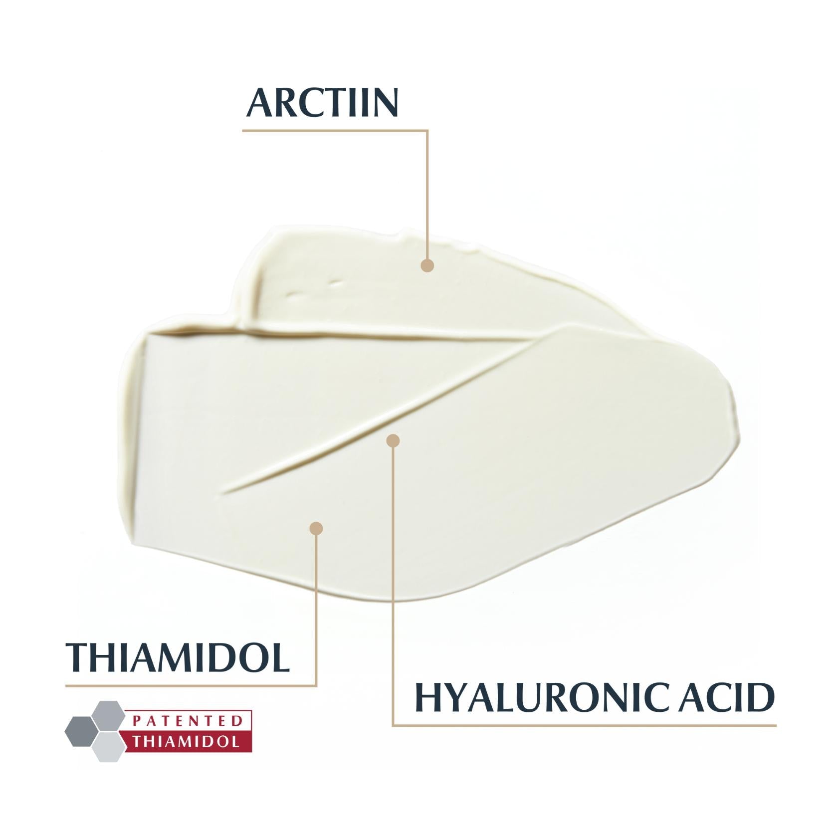 - Arctiin estimula a reparação celular e acelera o processo de renovação do colágeno, melhorando a elasticidade e firmeza;