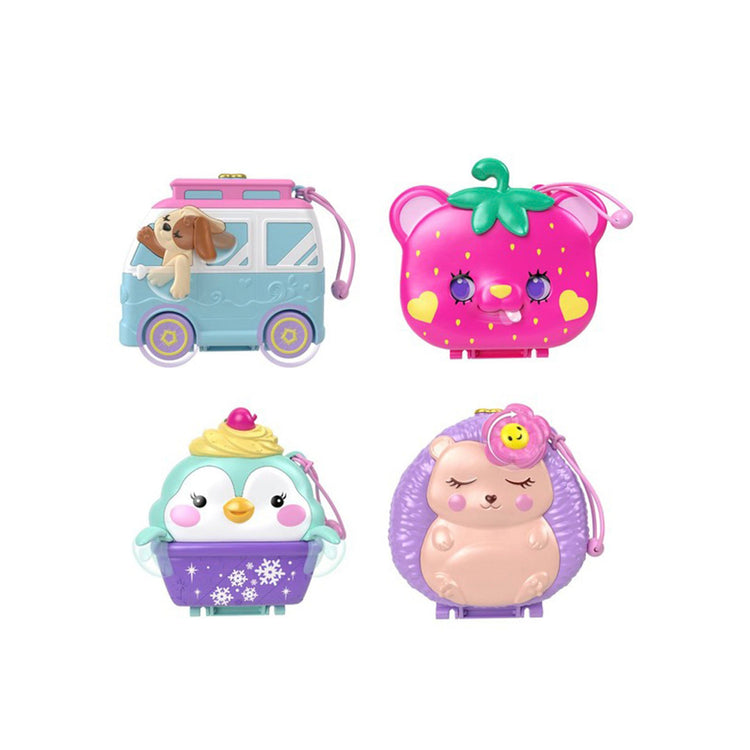 Ser pequena é altamente com o mundo Polly Pocket! Cada Mundo Polly Pocket abre-se num tema específico e inclui esconderijos secretos, mini bonecas e acessórios. O Mundo Polly Pocket compacto é pequeno o suficiente para levares para qualquer lado nas tuas aventuras. Escolhe a Loja de Doces com esconderijos secretos, mini bonecas pequenas Polly e Shani e acessórios; a Cascata do Flamingo que inclui esconderijos secretos, mini bonecas Polly e d Lila e acessórios; e a Surpresa na Neve que inclui esconderijos secretos, mini bonecas Polly e Shani e acessórios. Vendidos em separado e sujeitos à disponibilidade. As cores e as decorações podem diferir das mostradas.