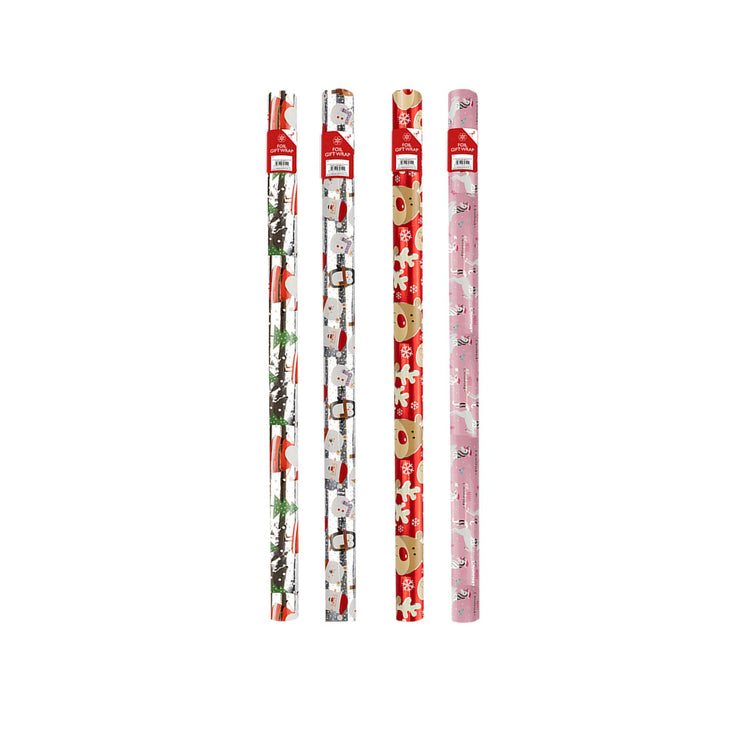 Cada rolo contém 2m x 70cm de papel de embrulho forte de 60gsm que apresenta um design metálico festivo.