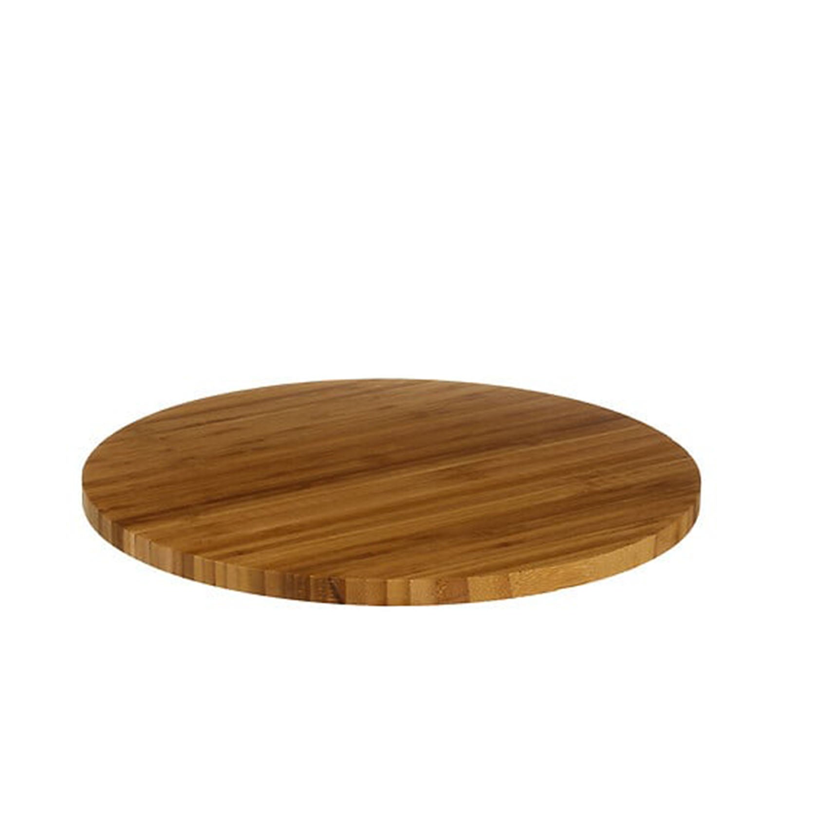 Prato rotativo em bambu natural (35 × 3 cm) com rolamento 360°. Perfeito para servir queijos, tapas ou bolos.