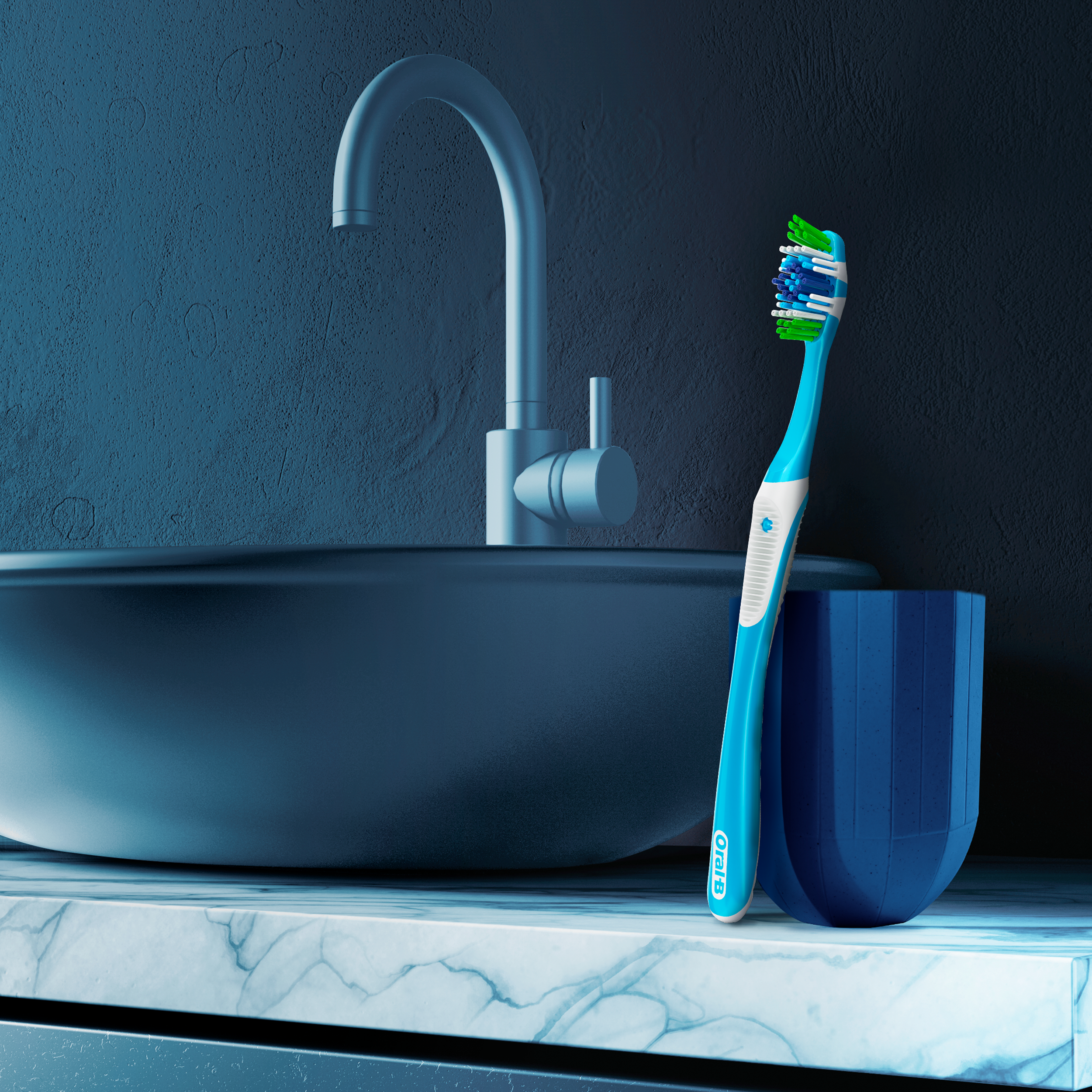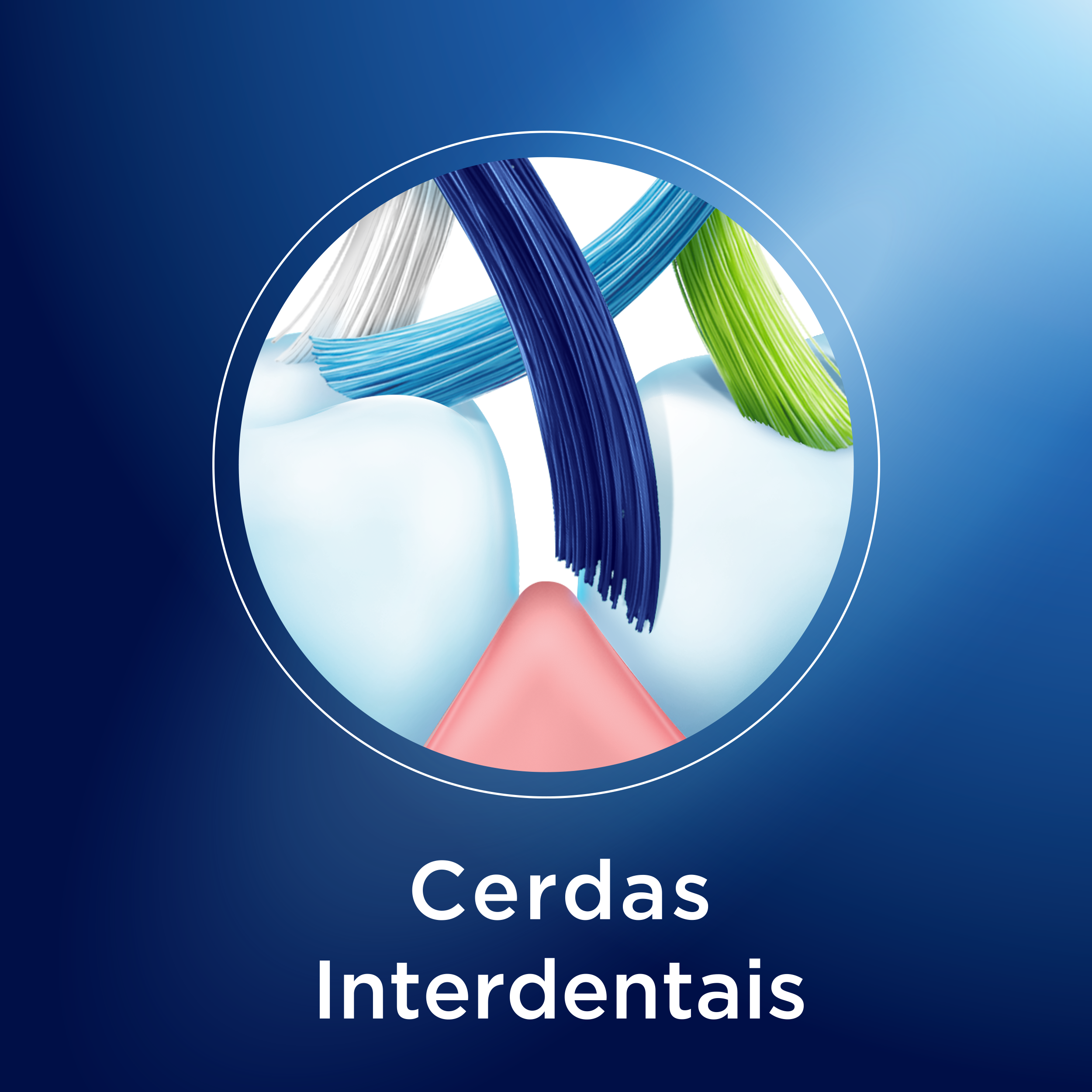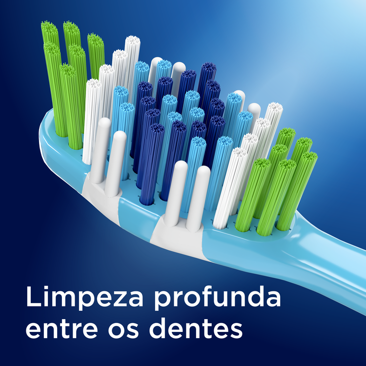 A escova de dentes Oral-B Complete 5 Way Clean possui 5 tipos de zonas de limpeza que oferecem uma limpeza oral superior e massajam as gengivas.