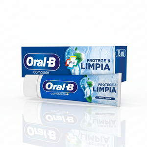 A pasta dentífrica Oral-B Complete Frescura Duradoura com elixir oral limpa mesmo em zonas difíceis de alcançar. Contém uma molécula de frescura especial e um agente antibacteriano que combate as bactérias causadoras de odores, proporcionando um hálito fre sco duradouro.