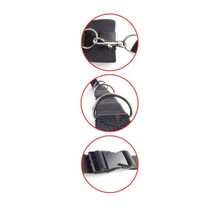 Você sempre sonhou em ser amarrado nas colunas da cama, mas e se sua cama não tiver nenhuma? Este versátil sistema de retenção possui duas grandes tiras de náilon que envolvem a cabeceira e o peseiro e se conectam a 4 amarras e punhos.