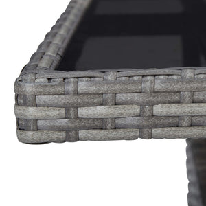 HKH 3 Pcs Conjunto de Jantar para Jardim Vime Pe e Vidro - Cinzento