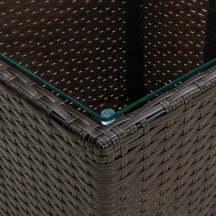 Esta mesa de jardim, caracterizada por uma estrutura de aço revestido a pó e coberta por vime PE resistente às intempéries com proteção UV, garante anos de utilização ao ar livre. O tampo é feito em vidro temperado reforçado com um suporte forte e é fácil de cuidar e limpar. Pode colocar bebidas, alimentos e outros artigos decorativos neste tampo resistente.