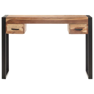Esta secretária estilo vintage, feita em madeira de acácia e de seringueira maciças, será um complemento intemporal para a sua casa. Cada etapa do processo é realizada com o maior cuidado, seja o polimento, a pintura ou o envernizamento. Graças à estrutura de aço forte, a secretária é muito estável e durável. O tampo da secretária fornece uma superfície estável e segura na qual poderá colocar as suas bebidas, uma fruteira, um jarro ou outros artigos decorativos. Possui duas gavetas que fornecem um amplo espaço para arrumar artigos pequenos tais como chaves e blocos de notas. A secretária pode ser utilizada como mesa de computador, mesa de trabalho, secretária de escritório, mesa de leitura, mesa de estudo, etc. Também pode ser utilizada como um aparador ou mesa consola.