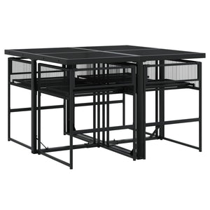 HKH 5 Pcs Conjunto de Jantar P/ Jardim C/ Almofadões Vime Pe - Preto