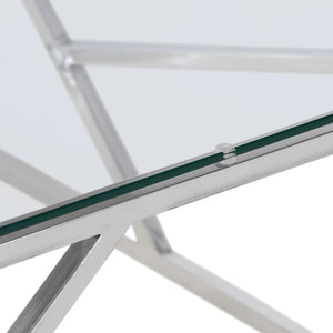 HKH Mesa de Centro e Vidro Temperado Prateado em Aço Inoxidável