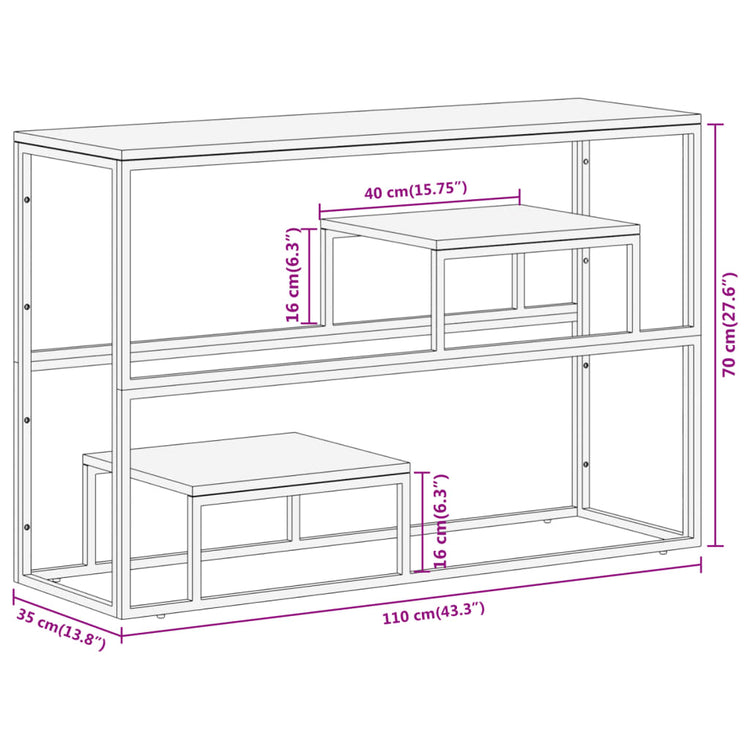 HKH Mesa Consola em Acácia Maciça e Aço Inoxidável - Prateado
