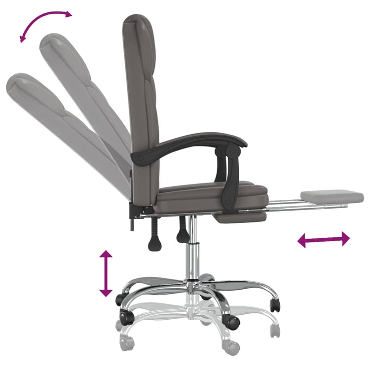 HKH Cadeira de Escritório Reclinável em Couro Artificial - Cinzento
