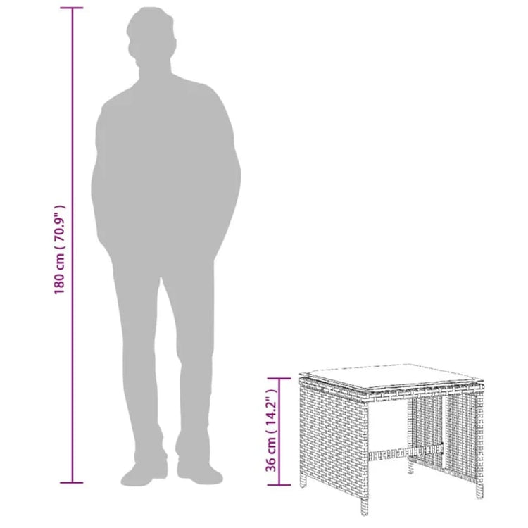 - Material durável: o vime PE, também conhecido como vime de poliéster, é um material sintético resistente e de baixa manutenção que se assemelha ao vime natural. É leve, fácil de limpar e geralmente utilizado em móveis de exterior devido à sua durabilidade e propriedades de resistência à s intempéries.