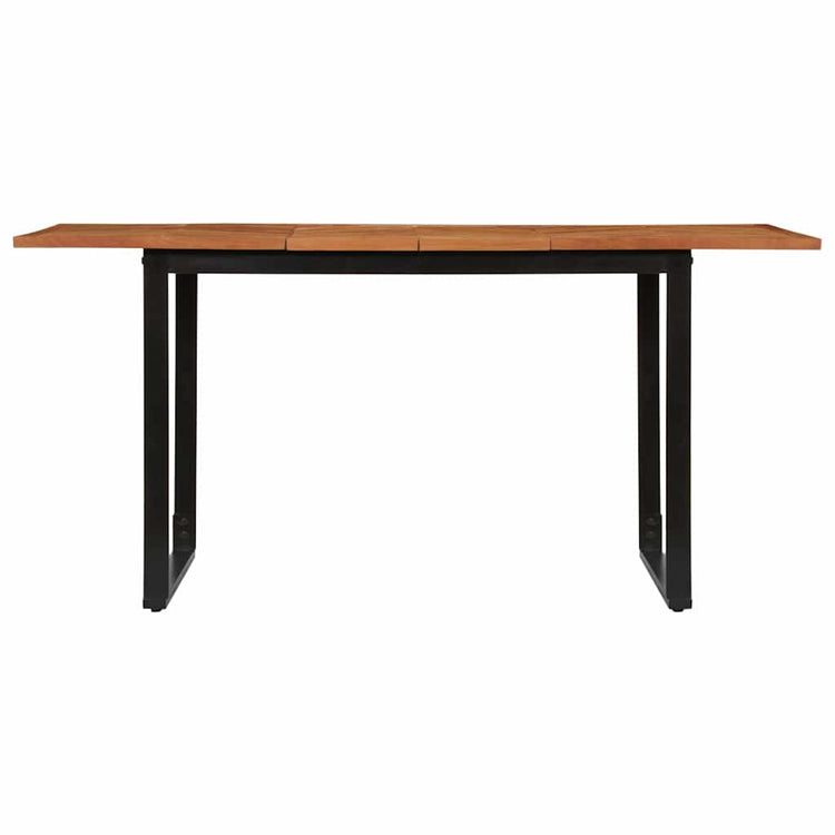 Desfrute todos os dias de uma refeição perfeita com a sua família ou amigos, nesta mesa de jantar em madeira! Material robusto e estável: a madeira de acácia maciça é conhecida pela sua resistência e durabilidade. As suas cores diversas e os padrões do grão únicos conferem-lhe uma aparência atraente. Com boa estabilidade e resistência às intempéries, é ideal para a confeção de mobiliário de interior e exterior.Estrutura robusta: A estrutura de ferro da mesa da cozinha adiciona um estilo industrial ao seu interior, garantindo robustez, estabilidade e longevidade.Tampo prático: o tampo robusto da mesa de jantar é perfeito para colocar refeições, bebidas e outros artigos decorativos.Com pernas: As pernas elevadas facilitam a limpeza debaixo da mesa de jantar, mantendo uma aparência arrumada e garantindo um melhor fluxo de ar em torno dos equipamentos eletrónicos. Dica útil:A cor e os grãos variam de peça para peça, tornando cada uma única. A entrega é aleatória, assegurando a exclusividade e a individualidade do seu produto.nan