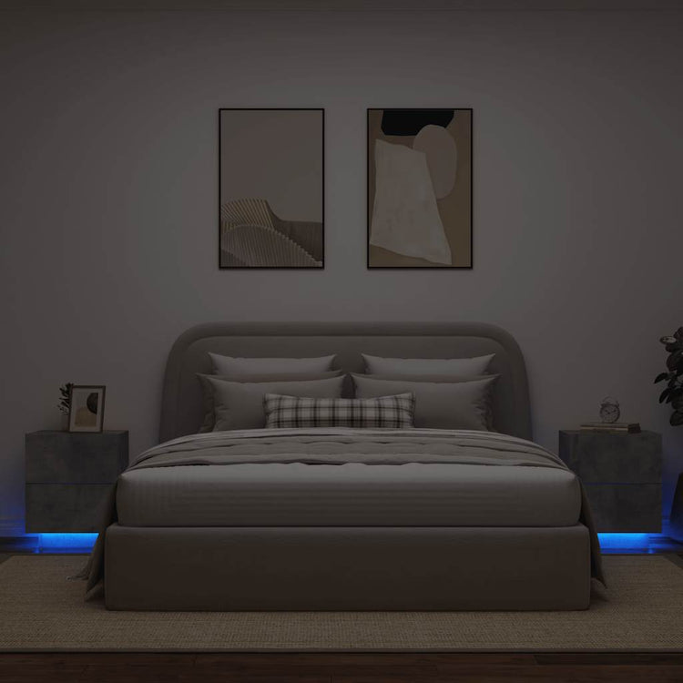 HKH Conjunto de 2 Mesas de Cabeceira com Luz Led em Derivados de Madeira Cinza Cimento
