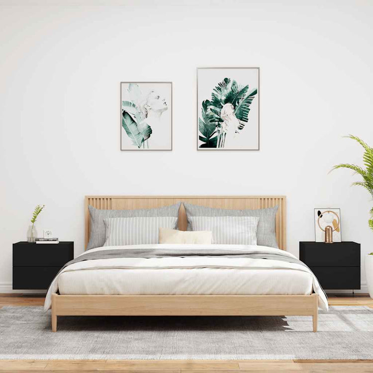 HKH Conjunto de 2 Mesas de Cabeceira de Parede com Luzes Led - Preto
