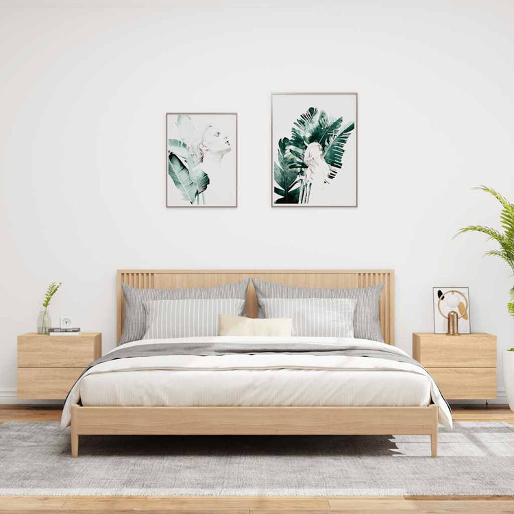HKH Conjunto de 2 Mesas de Cabeceira de Parede com Luzes Led Sonoma em Carvalho