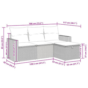 HKH 4 Pcs Conj. Sofás Jardim C/ Almofadões Vime Pe -claro - Cinzento