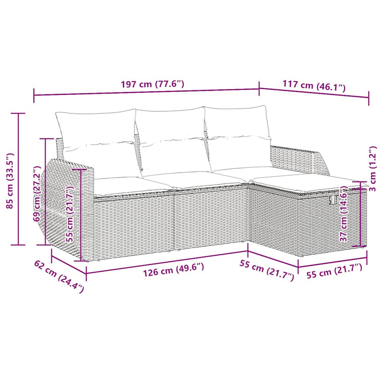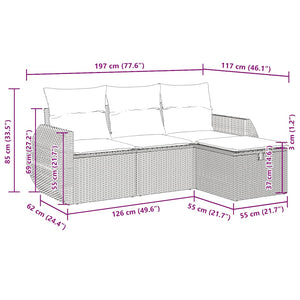 HKH 4 Pcs Conjunto de Sofás para Jardim C/ Almofadões Vime Pe - Bege