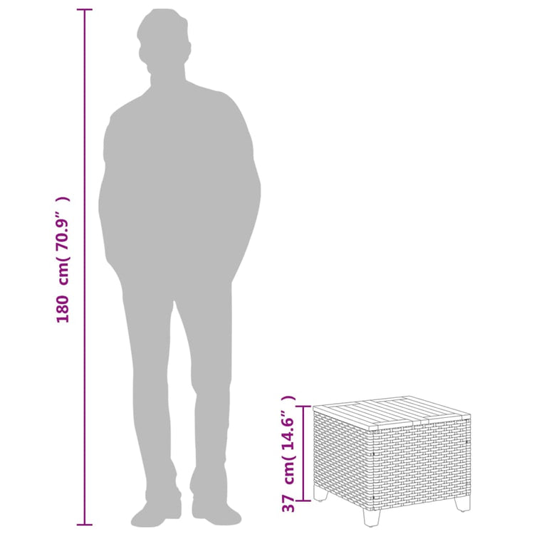 HKH Mesa de Jardim 45x45x37 Cm Vime Pe e Madeira de Acácia - Preto