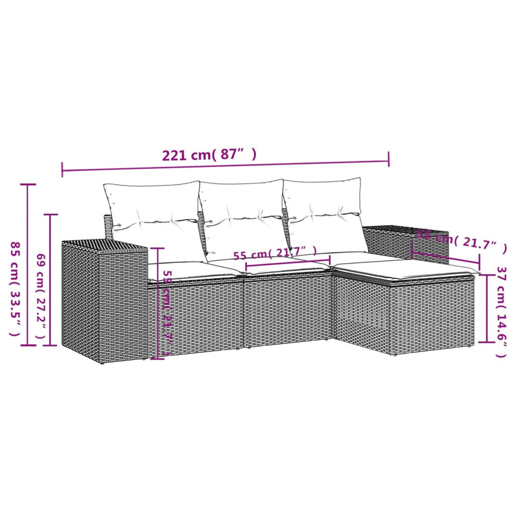 HKH 4 Pcs Conjunto de Sofás para Jardim C/ Almofadões Vime Pe - Preto