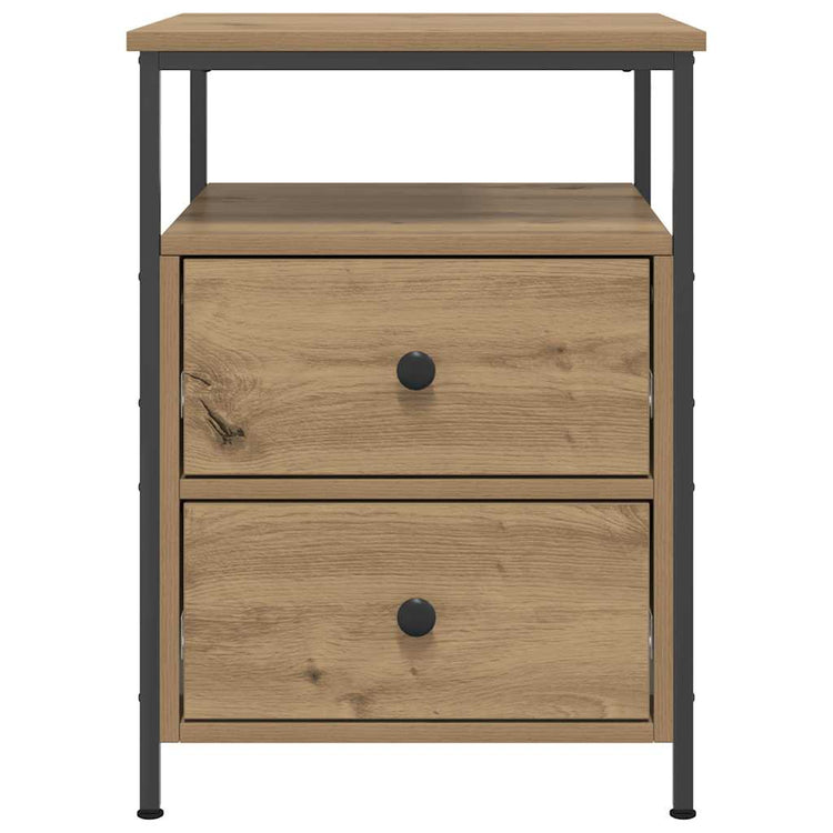 Esta mesa de cabeceira moderna, com um design elegante e clássico, destina-se a levar o seu interior ao próximo nível. Material durável: os derivados de madeira possuem uma qualidade excecional e oferecem não só uma superfície suave como também força, estabilidade e resistência à humidade. Feita a partir de derivados de madeira, a mesa de cabeceira é fácil de limpar com um pano húmido.Amplo espaço de arrumação: a mesa de cabeceira apresenta 2 gavetas e um compartimento, proporcionando um amplo espaço para manter as suas revistas, livros, controlos remotos e outros pequenos artigos bem organizados e ao alcance.Tampo robusto: o tampo robusto da mesa de cabeceira é ideal para expor objetos decorativos, molduras e vasos com plantas.Pernas de metal: as pernas de metal acrescentam um estilo moderno e calmo ao seu interior, ao mesmo tempo que garantem estabilidade. Atenção:Para evitar que tombe, este produto deve ser utilizado com o dispositivo de fixação na parede fornecido.nan