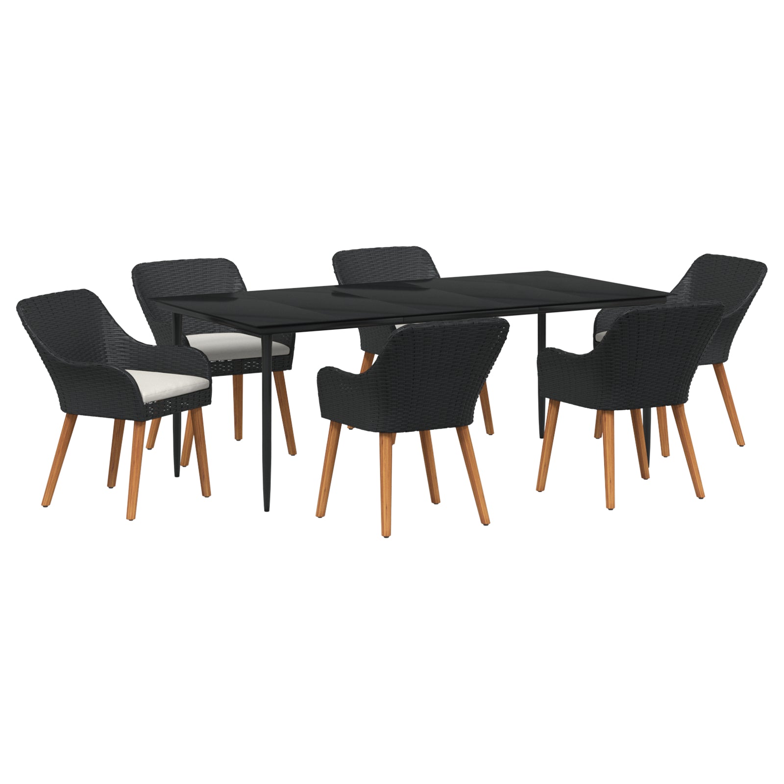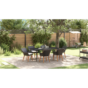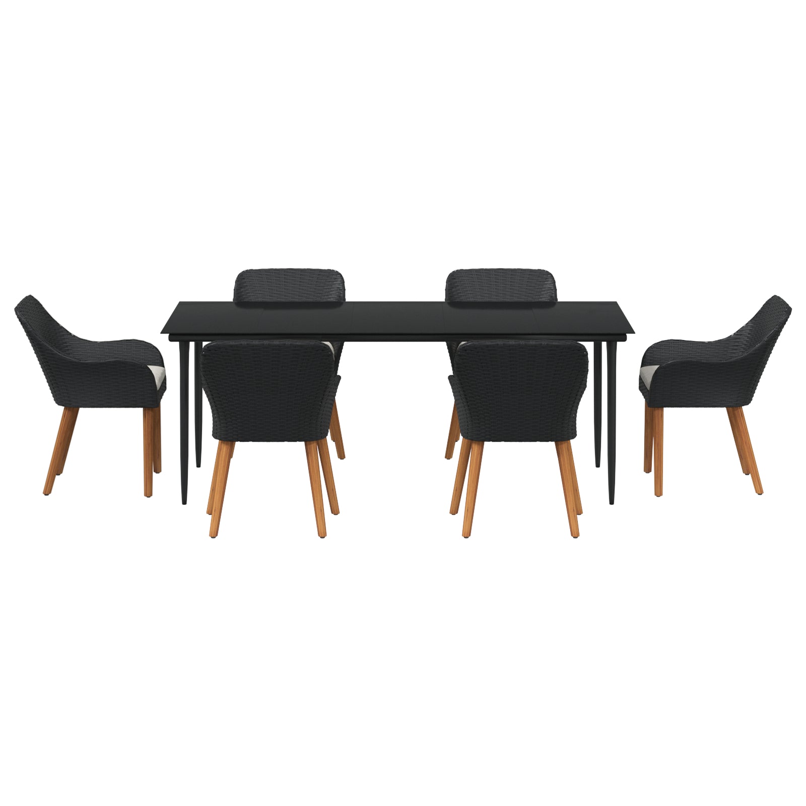 HKH Conjunto de Jantar de Jardim 7 Peças Polyrattan - Preto