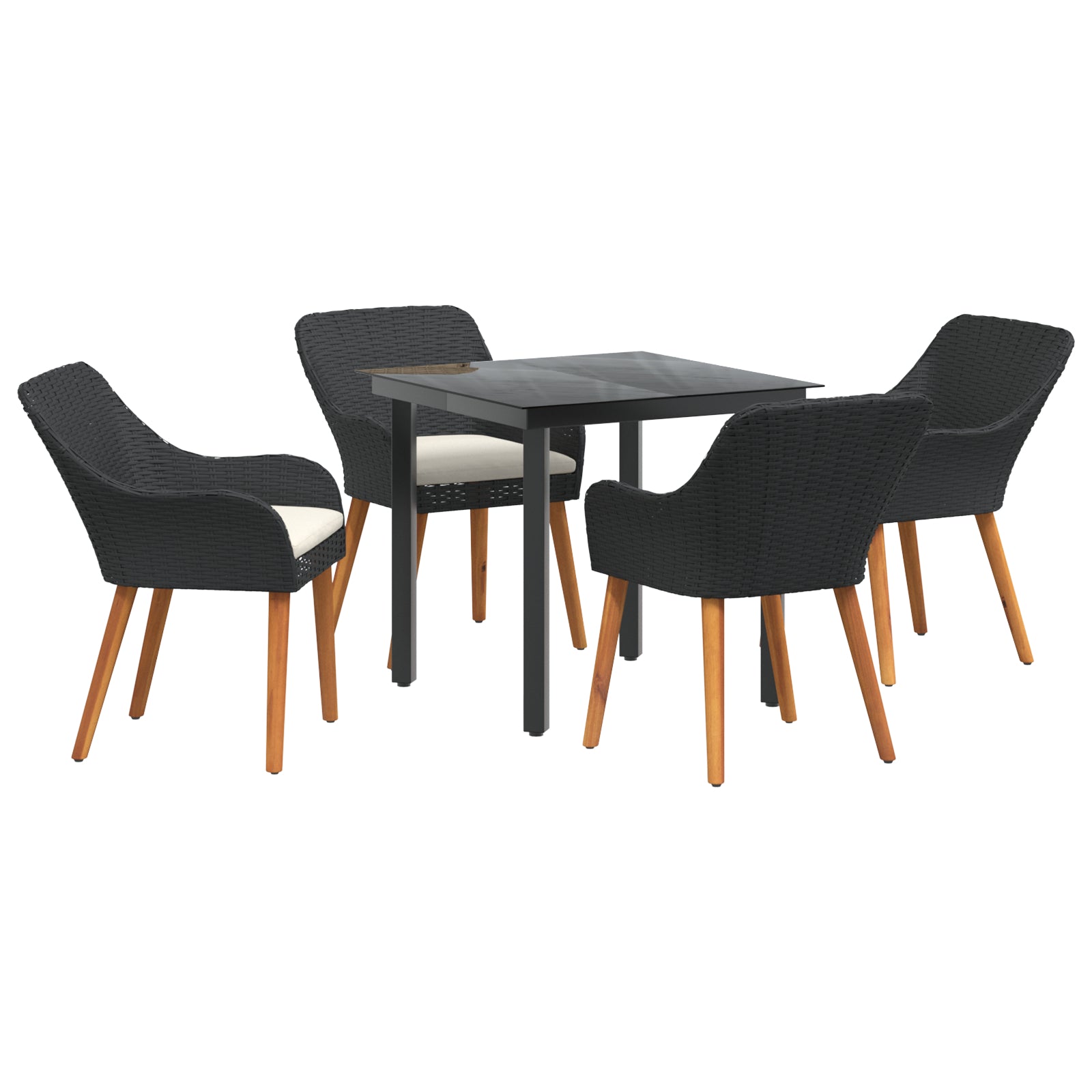 HKH Conjunto de Jantar de Jardim de 5 Peças em Polivime - Preto