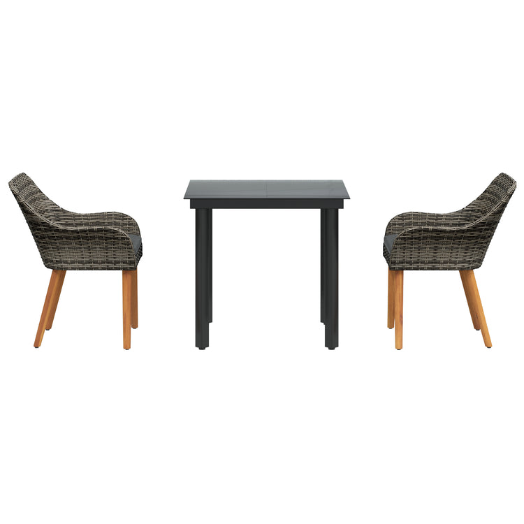 HKH Conjunto de Jantar de Jardim de 3 Peças em Vime Cinza - Cinzento
