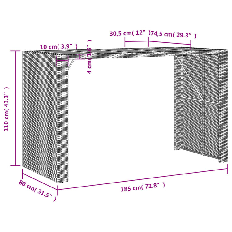 HKH Mesa de Bar para Jardim com Tampo em Acácia Vime Pe Cinza - Cinzento