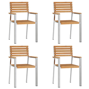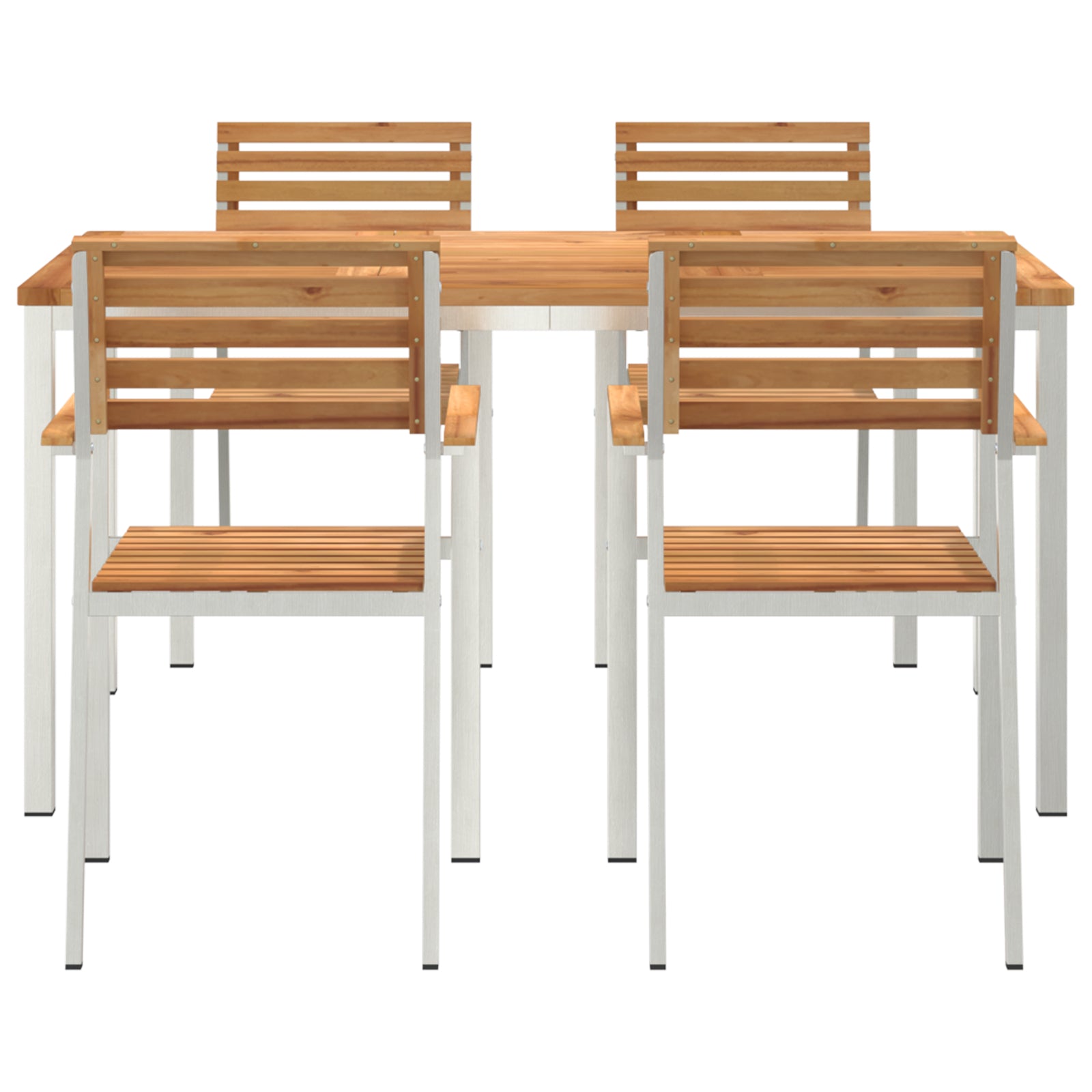 Conjunto de Jantar de Jardim HKH de 5 Peças Madeira Sólida de Teca, Mesa de Jantar Ao Ar Livre HKH 150x90x75 Cm Madeira Sólida de Teca, Cadeiras de Jardim Empilháveis HKH 4 Pcs Madeira Sólida de Teca e Aço - Castanho
