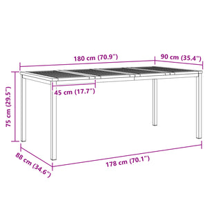 HKH Conjunto de Jantar de Jardim de 7 Peças em Madeira Sólida de Teca com Mesa de Jantar Externa 180x90x75 Cm + 2 Cadeiras Empilháveis + 4 Cadeiras Empilháveis - Castanho