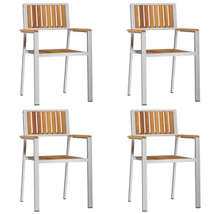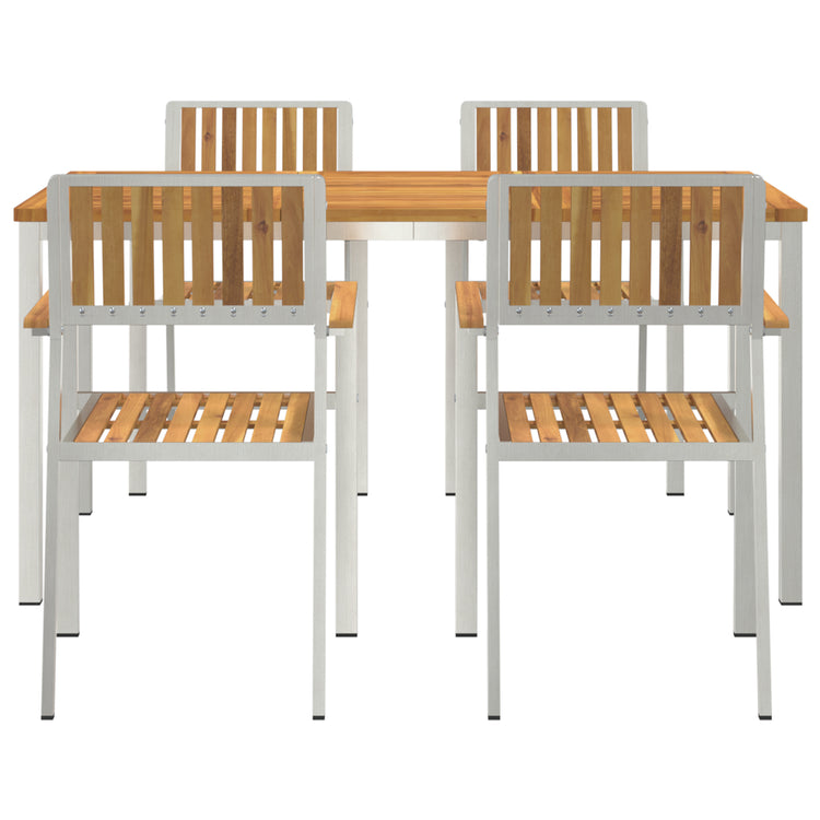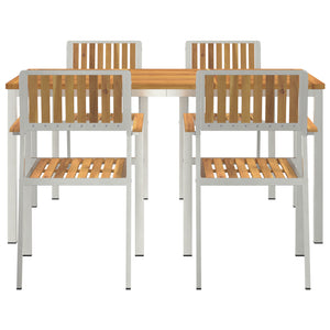 Este conjunto de jantar de jardim tem uma mesa retangular bonita e quatro cadeiras a condizer, feitas em madeira de acácia maciça. Ideal para refeições ao ar livre, traz um ambiente acolhedor para juntar a família e amigos no teu jardim ou pátio.