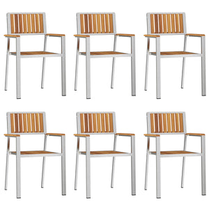 HKH Conjunto de Jantar de Jardim de 7 Peças em Madeira Maciça de Acácia com Mesa de Jantar 200x90x74.5 Cm + 2 Cadeiras Empilháveis + 4 Cadeiras Empilháveis - Castanho