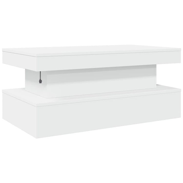 Decore a sua sala de estar com esta mesa de centro moderna com luzes LED que combina facilmente com mobília de qualquer estilo na sua casa. Material durável: os derivados de madeira possuem uma qualidade excecional e oferecem uma superfície suave bem como força, estabilidade e resistência à humidade.Tampo robusto: o tampo robusto desta mesa de apoio proporciona uma superfície segura, na qual pode colocar bebidas, vasos, fruteiras ou ornamentos.Luzes LED RGB: a mesa de apoio ao sofá está equipada com luzes LED RGB vibrantes. Com vários menus personalizáveis, pode facilmente mudar a cor das luzes e até configurá-las para que se ajustem automaticamente. Estas luzes LED não só melhoram o aspeto contemporâneo da mesa de centro, como também contribuem para o seu ar moderno.Design versátil: esta mesa de apoio ao sofá pode ir ao encontro das suas diferentes necessidades, uma vez que pode ser utilizada como uma mesa de apoio, mesa de centro ou mesa de telefone. Útil saber:O produto inclui um conetor USB que requer uma fonte de alimentação USB de 5V certificada (não incluída). Não utilizar este produto se algum componente estiver partido, rasgado ou em falta. Este produto é alimentado por CC 5V, mas a fonte de alimentação USB de 5V certificada não está incluída. Uma tensão mais elevada pode provocar um sobreaquecimento e resultar em danos no dispositivo e no risco potencial de sobreaquecimento e incêndio.nan