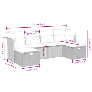 HKH 6 Pcs Conjunto Sofás de Jardim C/ Almofadões Vime Pe - Preto