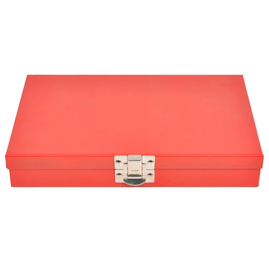 O kit robusto e durável é feito de aço de carbono e liga de aço fortes. As inserções têm uma guia completamente firme e estanque. Todas as ferramentas e inserções são entregues numa caixa de metal resistente para fácil armazenamento e transporte.