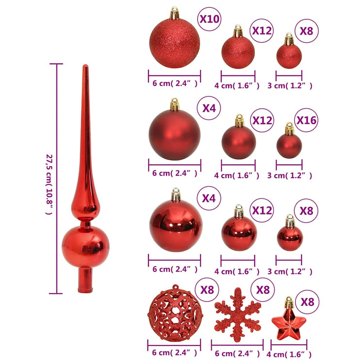 HKH Conjunto de 111 Enfeites de Natal em Poliestireno - Vermelho