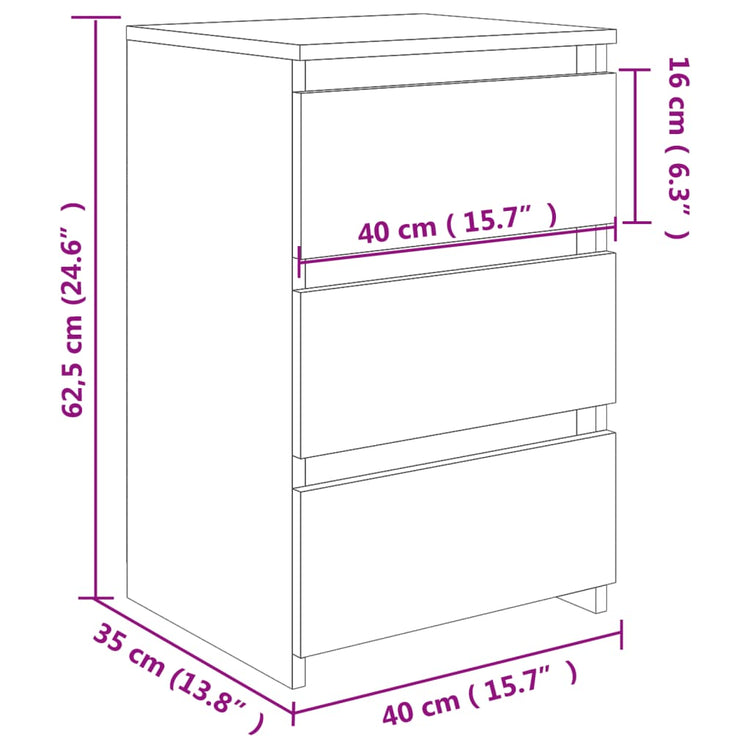 Leve o seu interior ao próximo nível com esta mesa de cabeceira elegante com um bonito design. A construção robusta do móvel de apoio é altamente durável. A mesa de cabeceira está equipada com três gavetas, proporcionando um espaço de arrumação amplo para manter os artigos organizados e ao alcance. Também é fácil de limpar com um pano húmido.nan