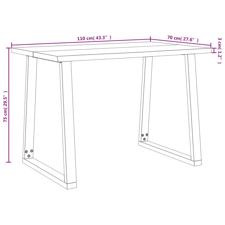 Esta mesa de jantar com um tampo em madeira de acácia maciça e pernas metálicas estáveis em forma de U, será um excelente complemento para a sua sala de jantar ou cozinha. Madeira de acácia maciça: o tampo é feito em madeira de acácia maciça. A madeira de acácia maciça é um bonito material natural. A madeira de acácia é uma madeira de lei, que é densa, robusta e durável.Bordas vivas: as bordas vivas da madeira, que seguem a forma natural da árvore, aumentam a beleza da mesa.Estrutura estável: as pernas em forma de U, feitas em aço revestido a pó, acrescentam um estilo industrial ao seu interior ao mesmo tempo que asseguram a estabilidade da mesa de jantar.Tampo prático: o tampo robusto da mesa de cozinha é perfeito para colocar refeições, bebidas e artigos decorativos.nan